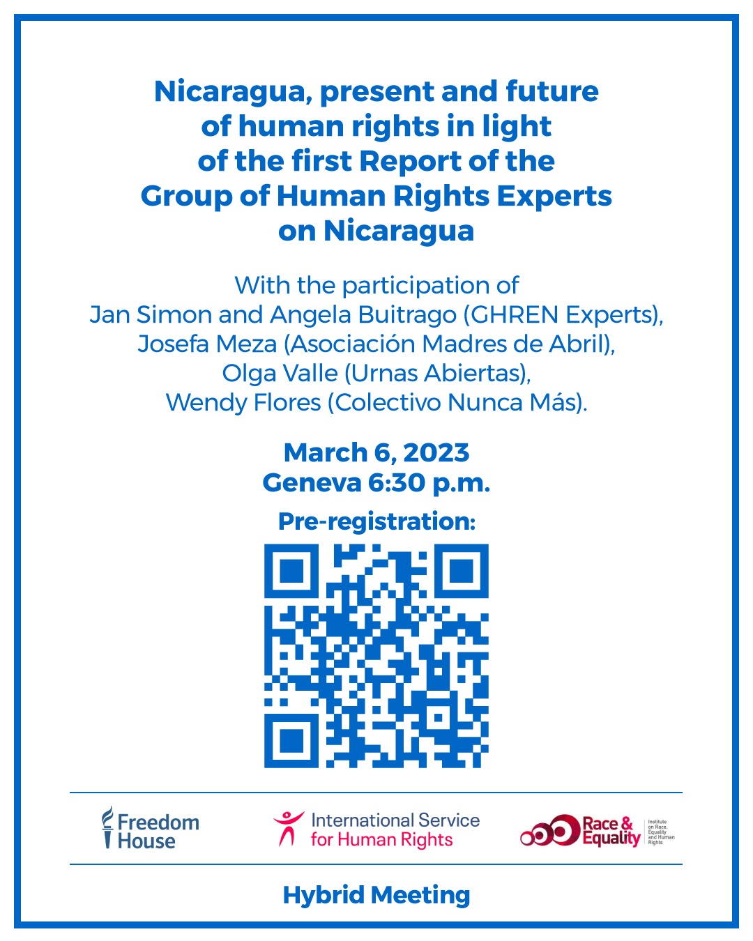 This side event, organised by ISHR, Race & Equality and Freedom House, aims at convening a public conversation between the GHREN and members of civil society, diplomats and the public interested in the situation of human rights in Nicaragua. It will be held in Spanish with English interpretation.