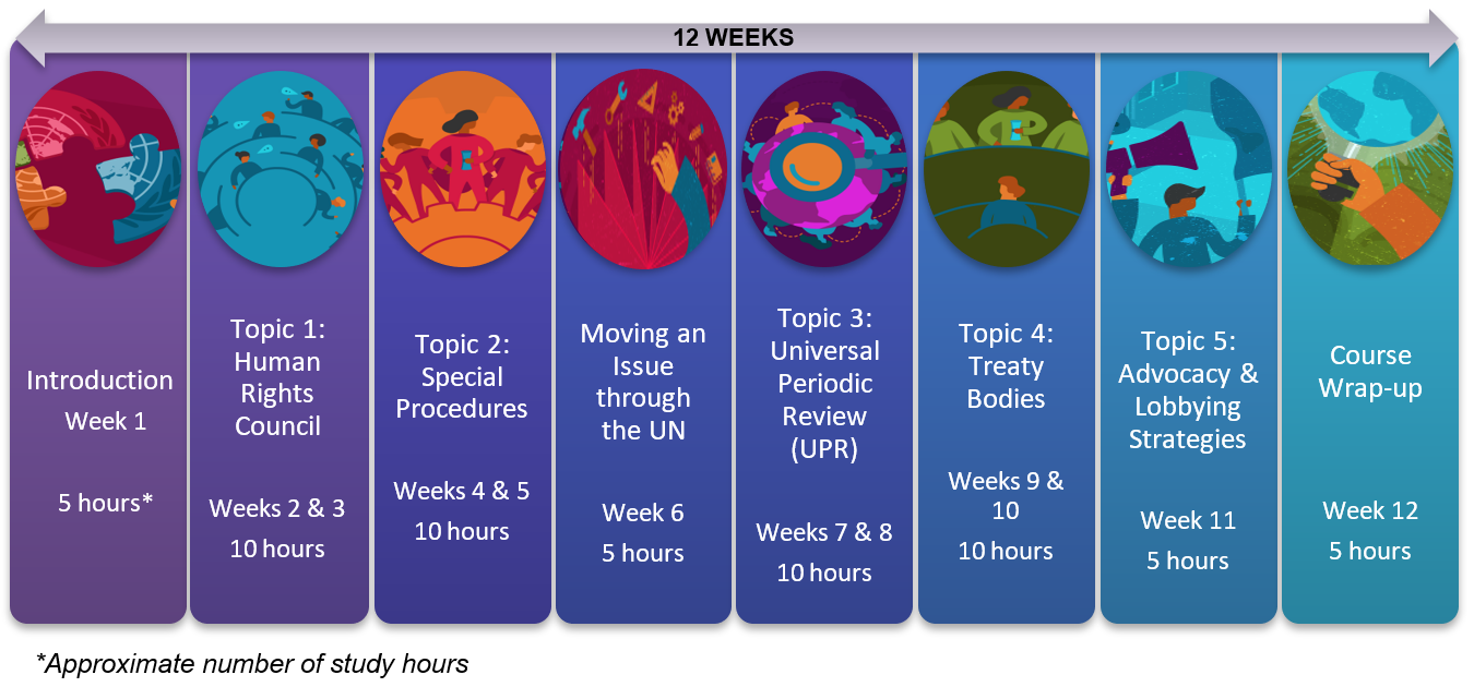 - Access to the new HRDAP Platform, where you can complete e-learning courses on each key UN human rights mechanism and on advocacy and lobbying